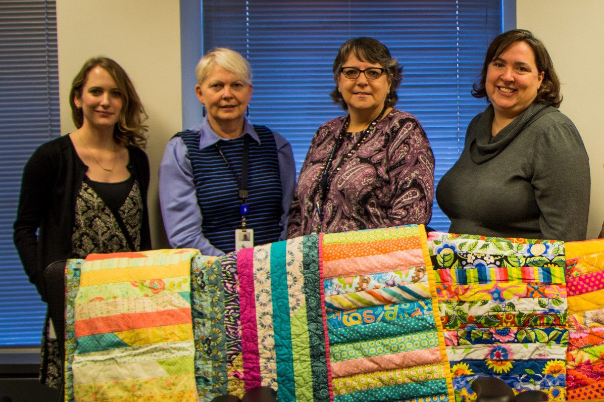 The idea for the club originated when two quilters decided to seek out co-workers who might be interested in getting together to create quilts and contribute them to charitable organizations. The Quilt Club meets regularly at lunch to plan their projects and share advice. The group includes expert quilters and those with little or no experience who are interested in trying something new while contributing to worthwhile organizations.