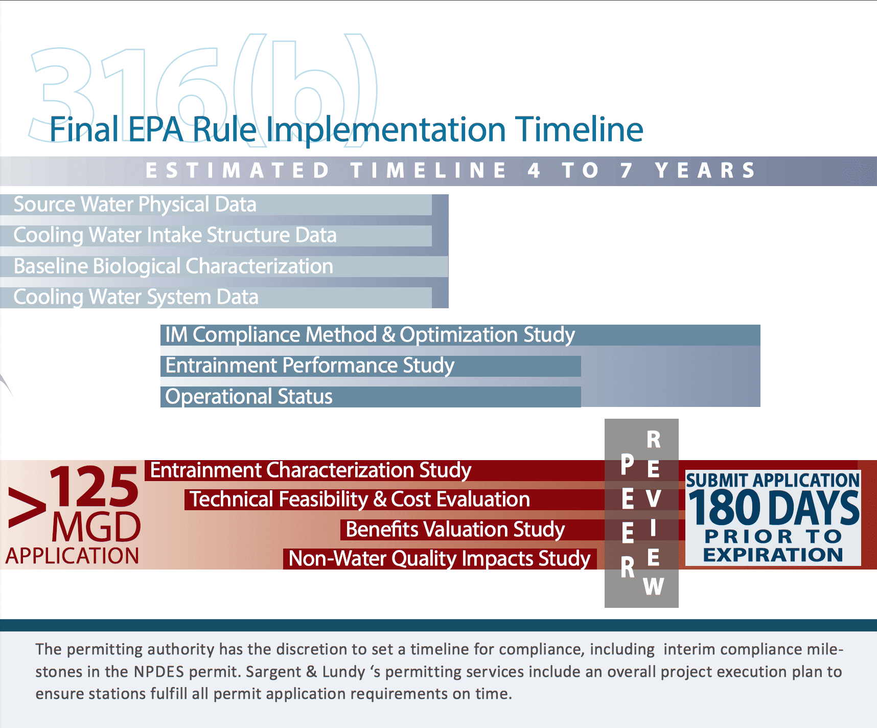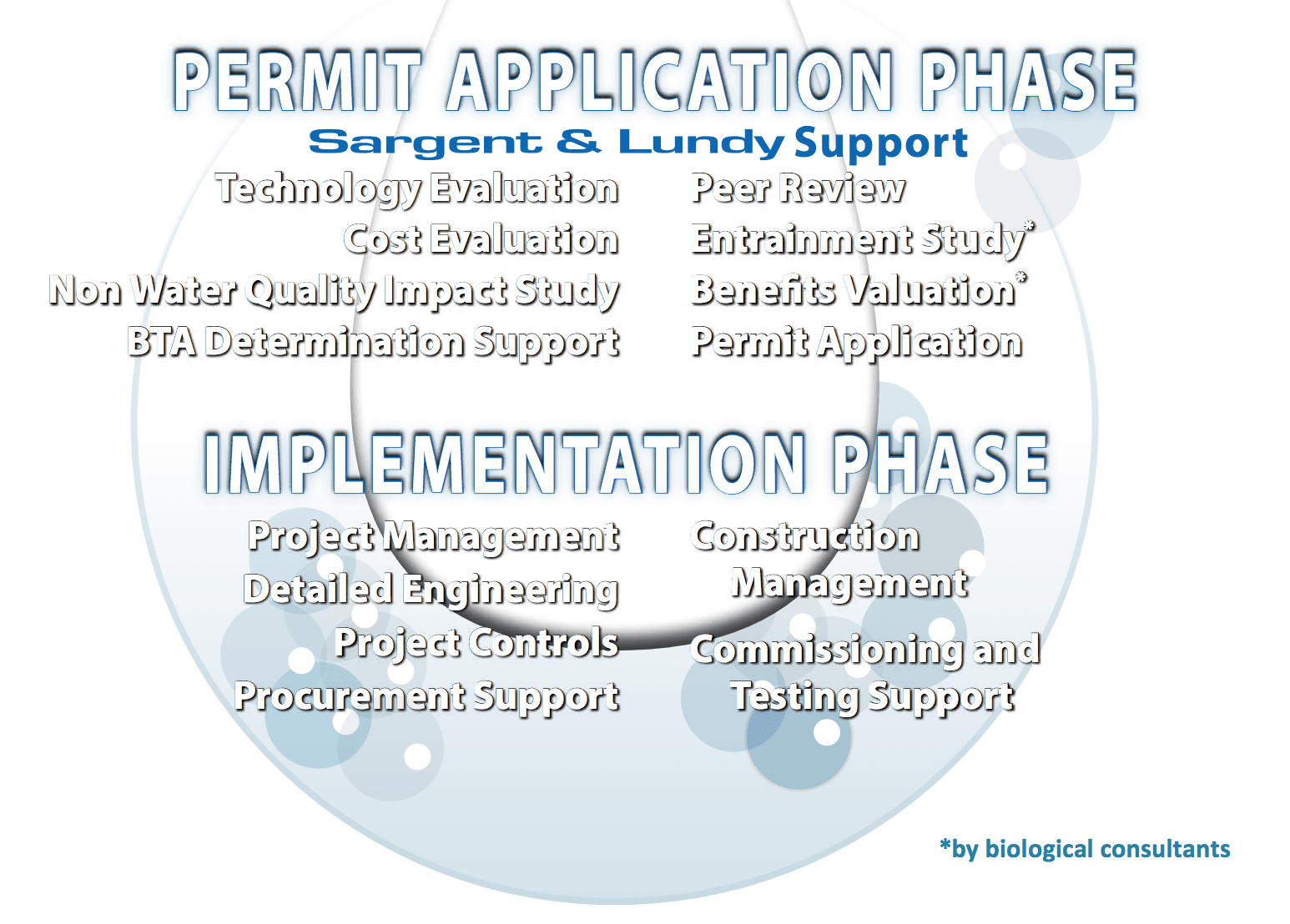 Sargent & Lundy’s environmental services group supports the preparation of all required permit application material. In some cases, for example, the entrainment characterization study and benefits valuation study, the expertise of a biological consultant is required. Sargent & Lundy’s full-service support for 316(b) can start with the permit application phase and extend throughout project implementation.
